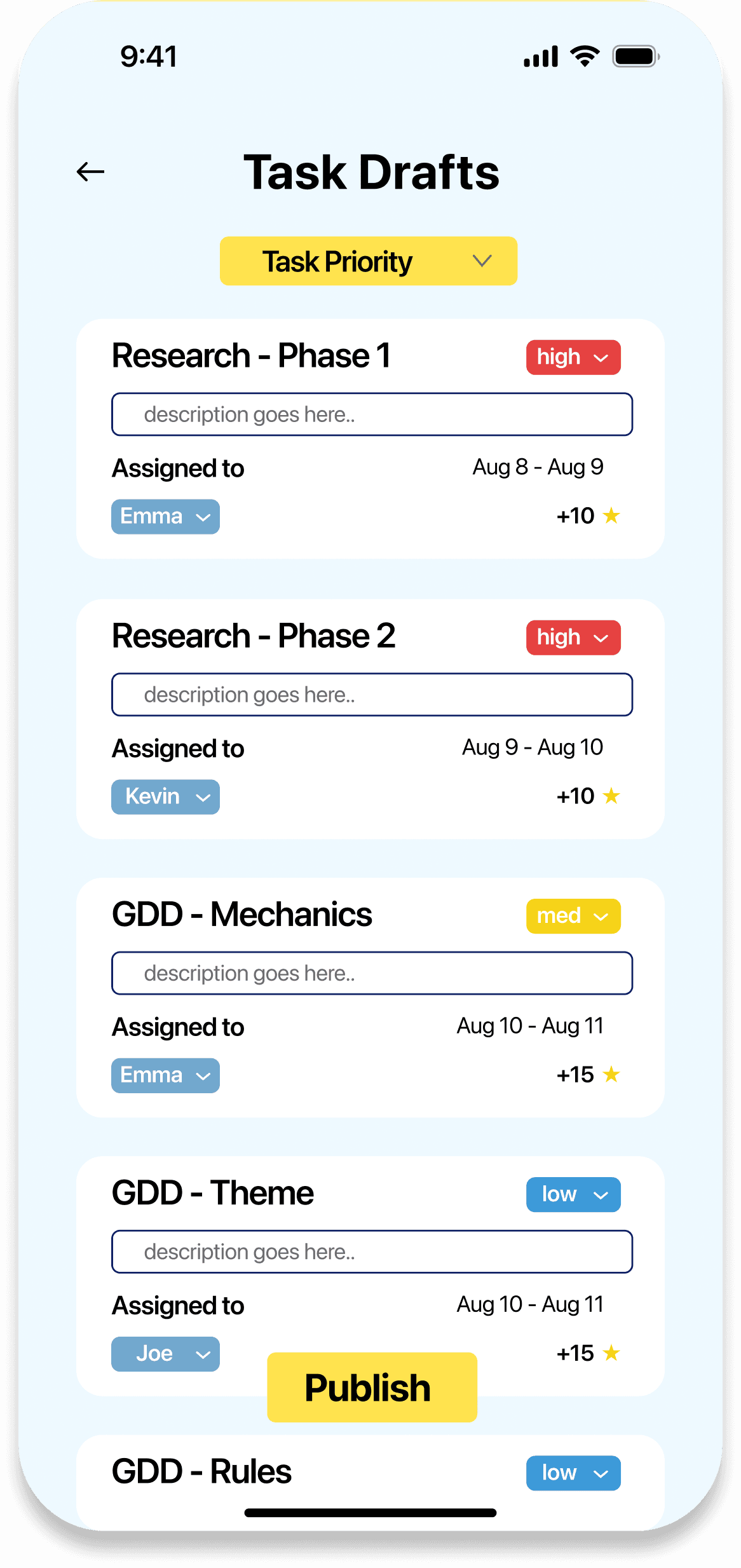 Completes her tasks but struggles with communication, feeling uncomfortable reminding or pushing teammates.