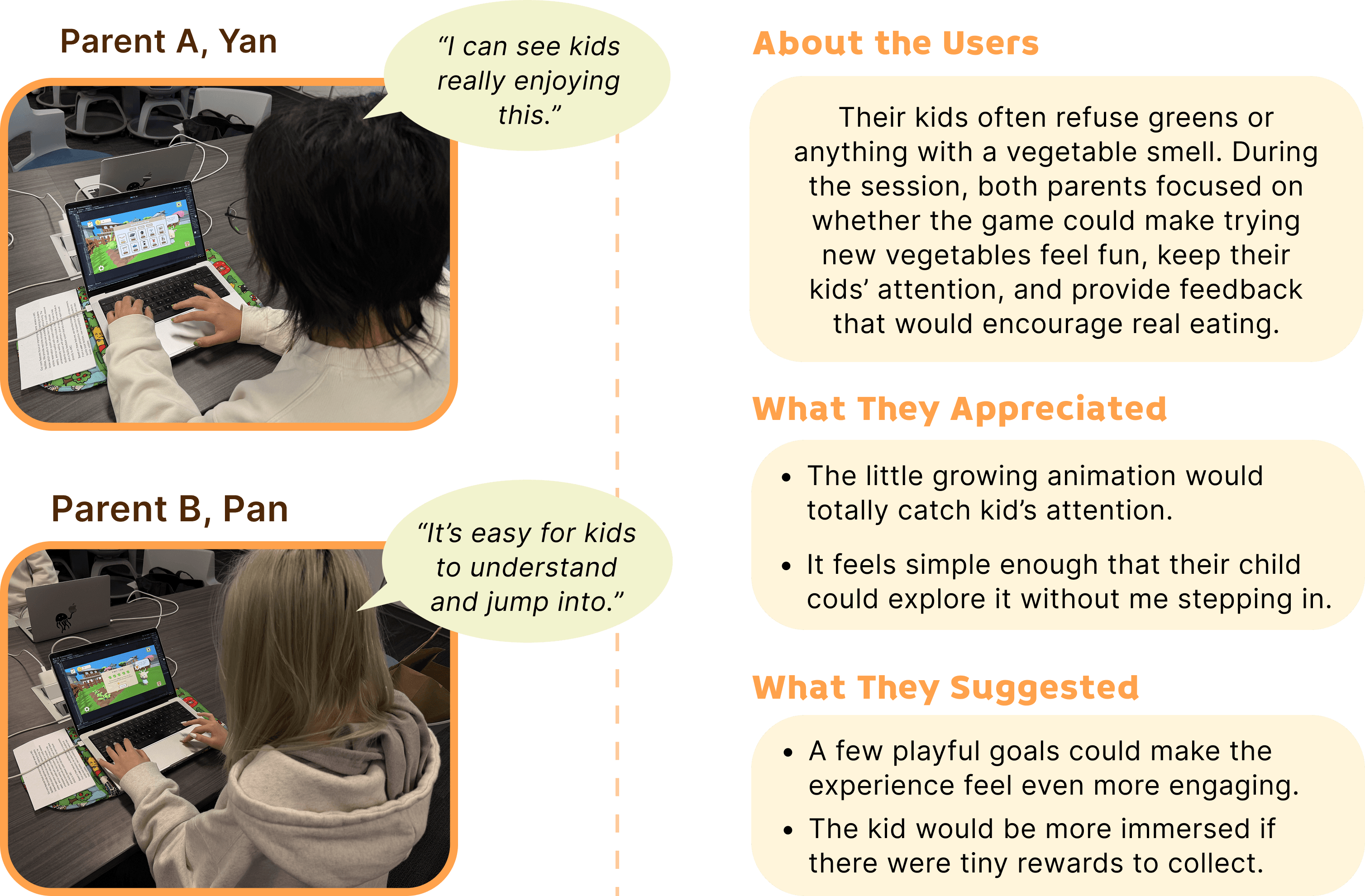 After the interview, I found that children enjoy instant rewards that make eating fun, but their motivation lasts longer when they can watch something grow or evolve over time.